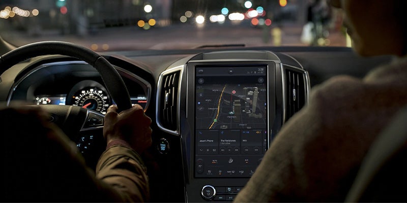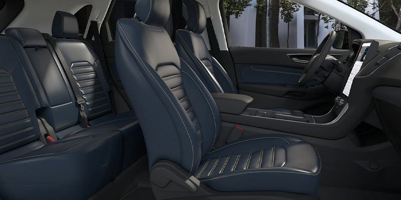 Inside the 2023 Edge, you'll find seating for five with ample headroom and legroom for everyone. You can also take advantage of comfy yet durable seating surfaces that pair nicely with premium accents. When the rear seats aren't in use, you can fold them flat for a maximum cargo space measuring 73.4 cubic feet. Depending on which trim you choose, you'll also enjoy amenities like dual-zone automatic climate control, customizable ambient lighting, and front seats with heating. Every Edge comes with a 12-inch LCD touchscreen featuring a SYNC 4A infotainment system.